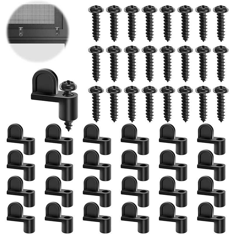 24 Pcs 3/8 Inch Diecast Door Glass Window Screen Clips with Screws for Storm Door Retainers and Window Screen Fasteners, Durable Black Hardware for Home and Commercial Use