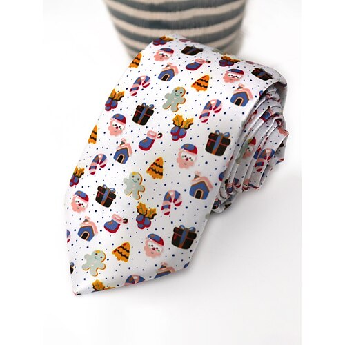 cravatte natalizie in poliestere da uomo: motivi natalizi con Babbo Natale, pupazzo di neve e motivi natalizi, perfetti per feste di Natale e occasioni festive