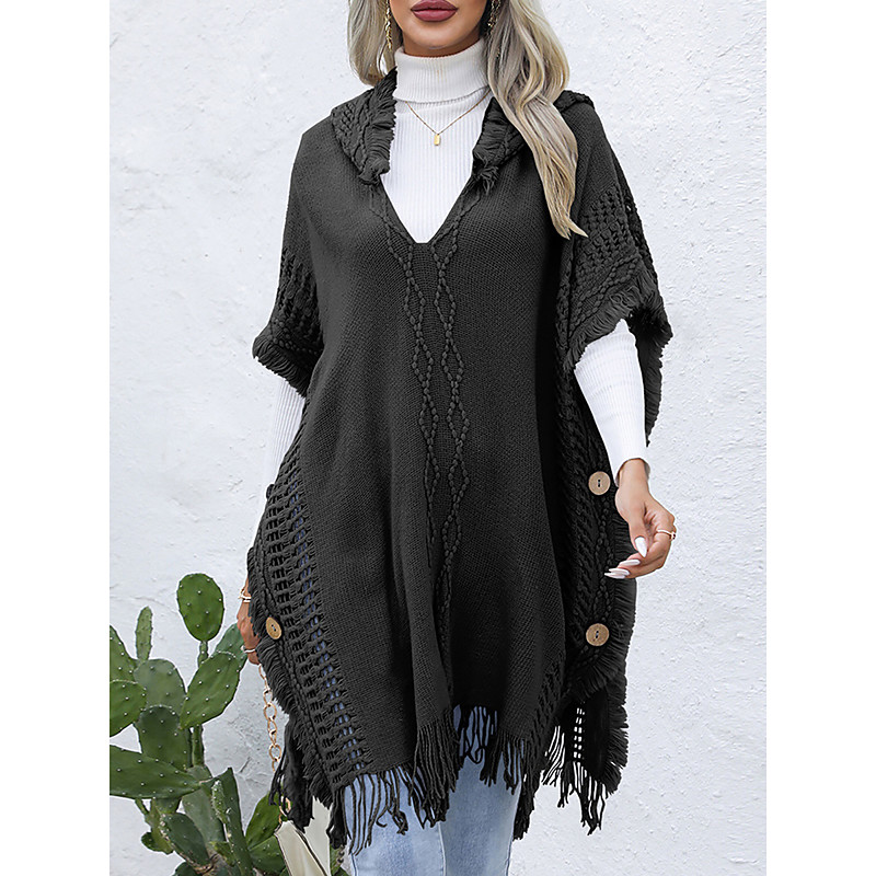 Women's Pullover Casual Solid Color Ribbed V Neck Patchwork Tassel Sleeveless Sleeveless Long Tops Knit Outdoor Date Black Green Spring Fall