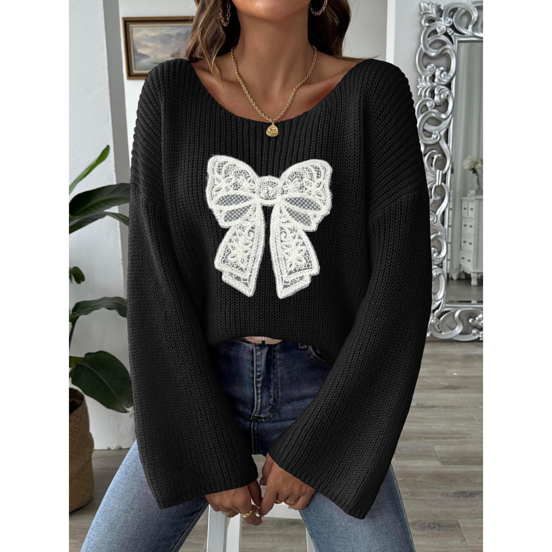 Women's Sweater Pullover Elegant Cute Daily Crew Neck Oversized Long Sleeve Regular Tops Knit Daily Holiday Date Black Pink Fall Winter