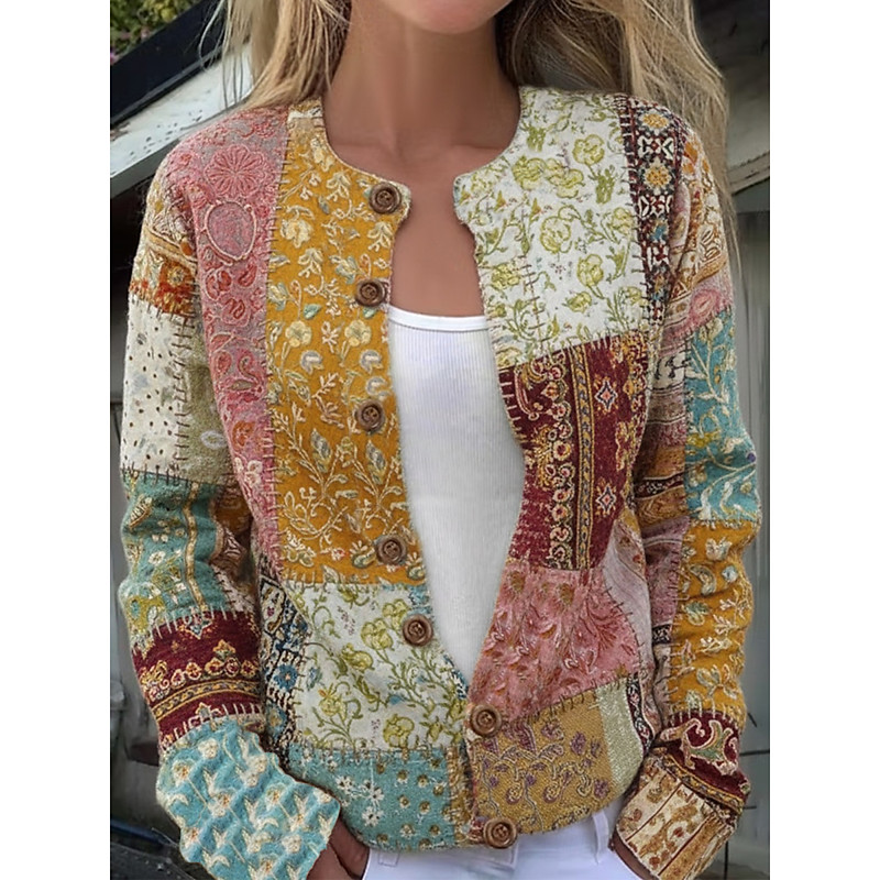 Women's Cardigan Vintage Daily Ethnic Style Floral Ribbed Crew Neck Buttons Print Long Sleeve Regular Tops Knit Outdoor Daily Date Green Spring Fall