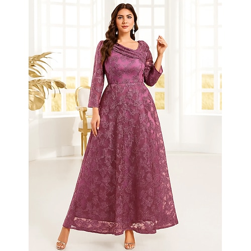 Abito a-line lungo fino al pavimento abito da festa abito da cocktail abito da sposa abito madre della sposa maniche lunghe scollo tondo elegante formale abito da matrimonio con ricami