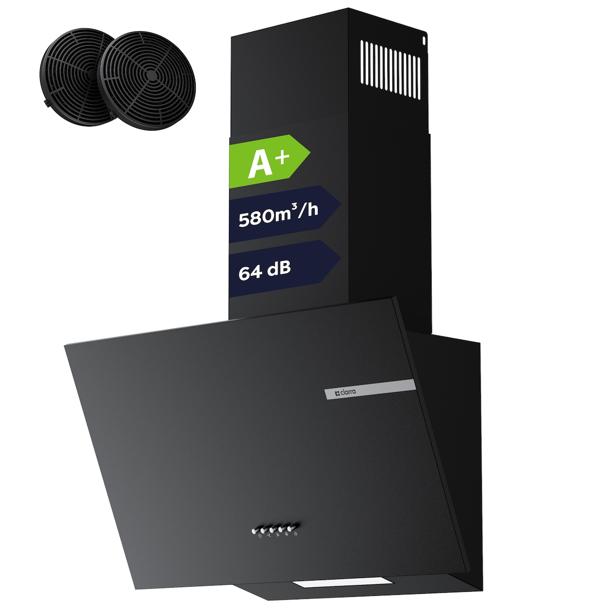 CIARRA Kopffreihaube, Schräge Dunstabzugshaube, A+ Max. 580m³/h 60cm 3 Stufen, Umluft & Abluft VM6765AB