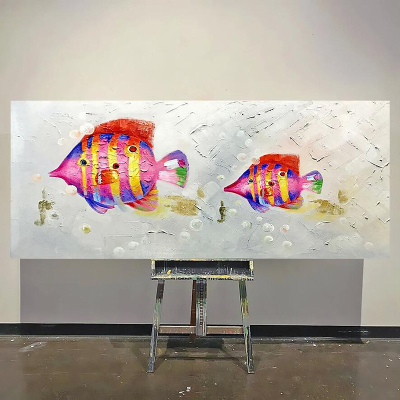 Funny Designed 4 Birds Friend Oil Painting on Canvas Artist Hand Painted Funny Loverly Animal Oil Painting for Living Room