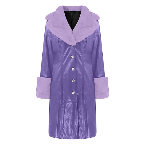 Per donna Giacca in Ecopelle Cappotto Invernale Cappotto Caldo Confortevole Tasca Bottoni Collo in Pelliccia Moda Casual Tinta unica Vacanza Streetwear Casuale Abbigliamento quotidiano Lungo Collo