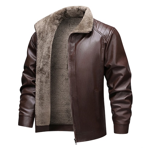 Per uomo Giacca in Ecopelle Giacca di transizione Giacca da Biker Giacca da Moto Quotidiano Calore Termico Impermeabile alla pioggia Autunno Inverno Tinta unita Collo alla coreana Regolare