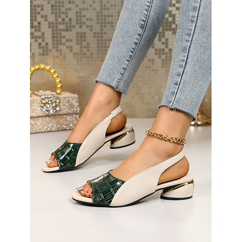 Per donna Quotidiano Tacco grosso Peep Toe Elegante Finta Pelle Mocassino Nero Rosso chiaro Marrone