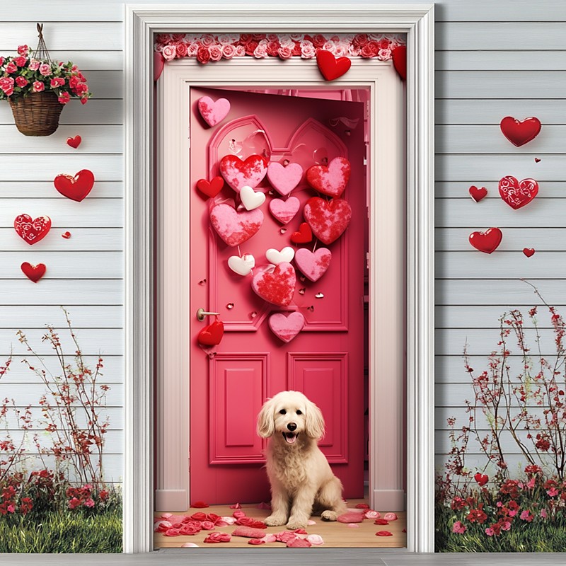 Valentine's Day Posters Door Cover Outdoor Banners Love Heart Cute Romantic Modern Party Dorm Shooting Backgrounds Front Door Marriage Proposal Decoration Home Decor
