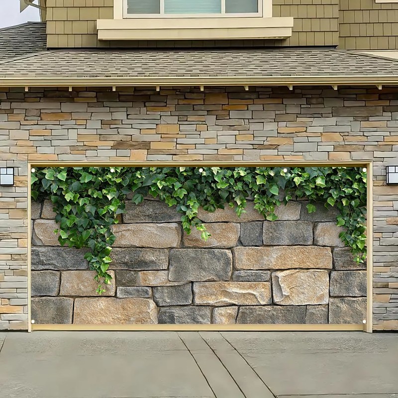 Tapestry Garage Door Cover Large Hanging Backdrop Optical Illusion Ivy Stone Wall Rustic Cottagecore 3D Party Outdoor Shooting Backgrounds Front Door Home Decor