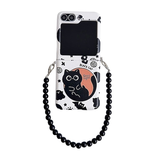Phone Case For Samsung Galaxy Z Flip 7 Z Flip 6 Z Flip 5 Z Flip 4 Z Flip 3 Back Cover with Wrist Strap Shockproof Cartoon Cat TPU PC