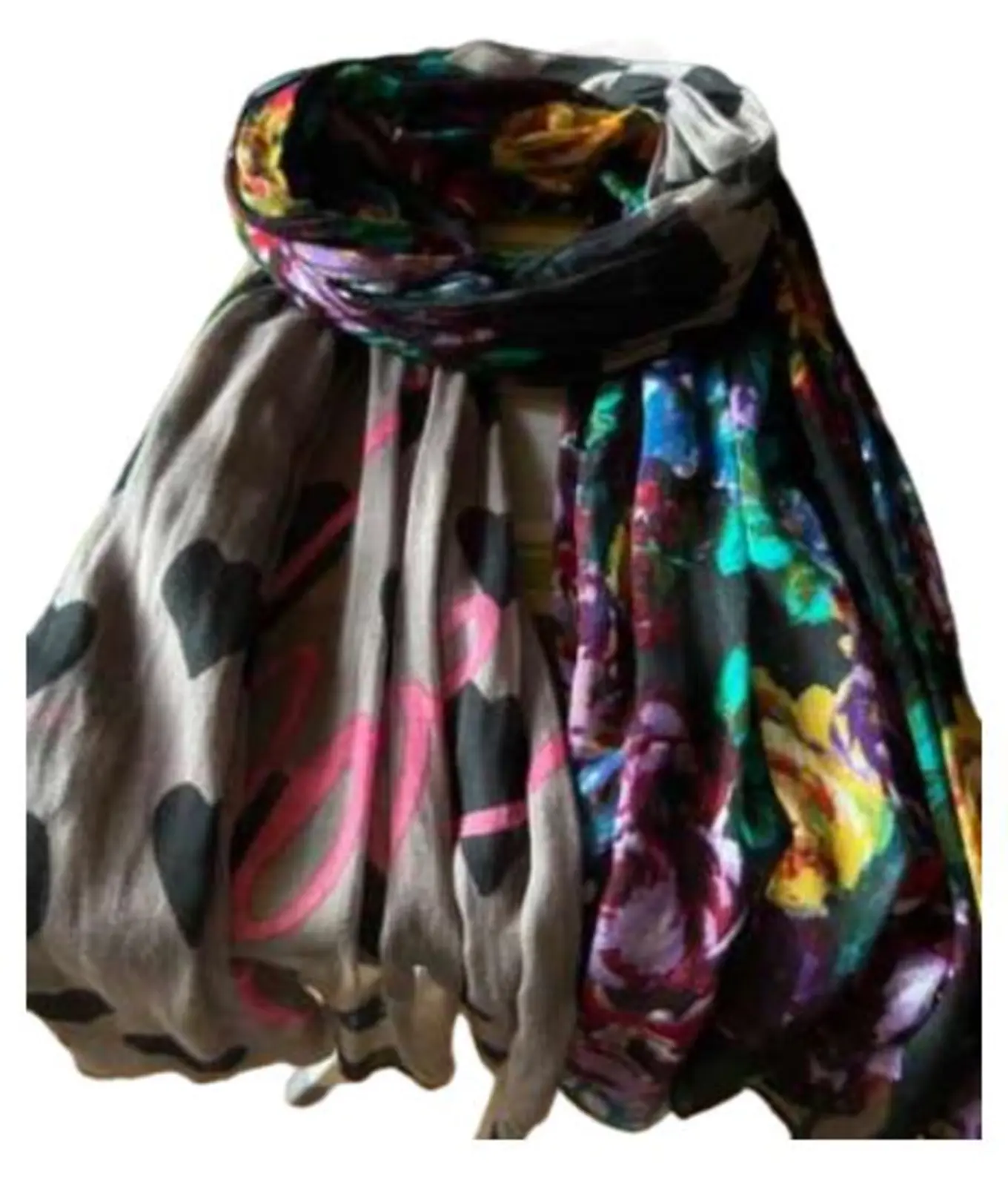 CODELLO Damen Schal, mehrfarbig, 196x91 cm, Herzen & Blumen