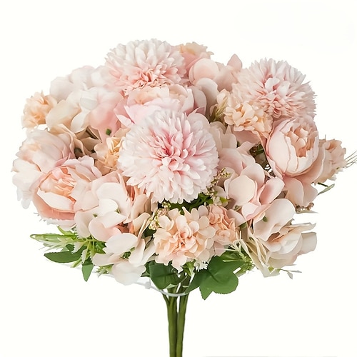 3 mazzi di fiori artificiali di crisantemo e peonia da esterno resistenti ai raggi UV con un tocco realistico adatti per la decorazione di davanzali di finestre di interni ed esterni in primavera,