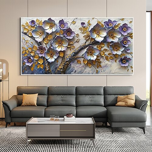 handgemachtes Ölgemälde auf Leinwand, Wandkunst, Dekoration, modern, abstrakt, 3D-Spachtel, violett, dicke Ölblumen für die Inneneinrichtung, gerolltes, rahmenloses, ungedehntes Gemälde