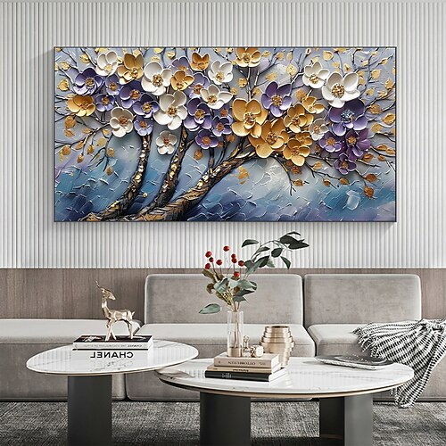 handgefertigtes Original-Ölgemälde mit bunten Pflaumenblüten auf Leinwand, abstraktes 3D-Baumlandschaftsgemälde für die Inneneinrichtung mit gespanntem Rahmen/ohne Innenrahmen