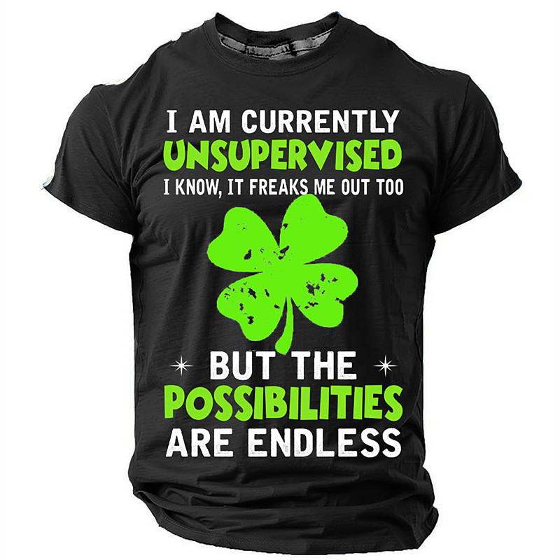 St. Patrick Men's Four Leaf Clover Shamrock I Am Currently Unsupervised I Know It Freaks Me out Too Lucky Irish T Shirt T shirt Tee Short Sleeve T shirt 3D Print Crew Neck Shirt Daily Designer Retro