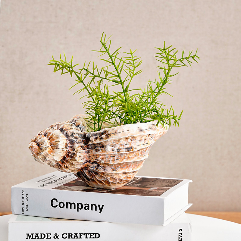 Seashell Shaped Resin Vase, 9.8-Inch Bohemian Tabletop Flower Vase, Indoor Decorative Hydroponic Planter for Home Decor and Gifts