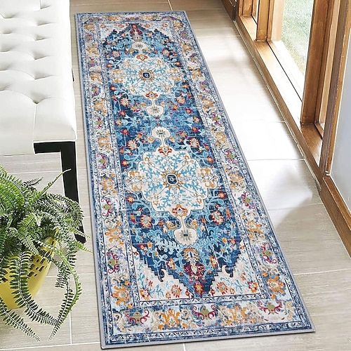 Tappeti da corridoio per cucina in stile persiano tappetino assorbente in velluto cristallo per lavandino lavanderia corridoio resistente con retro in gomma morbido antiscivolo e lavabile in lavatrice