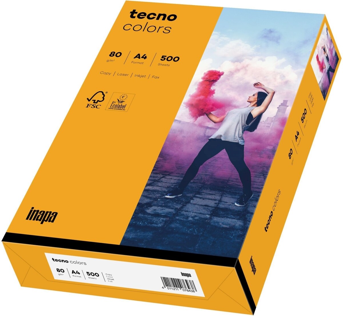 INAPA Multifunktionspapier tecno colors A4 80g/qm VE=5x500 Blatt mittelorange