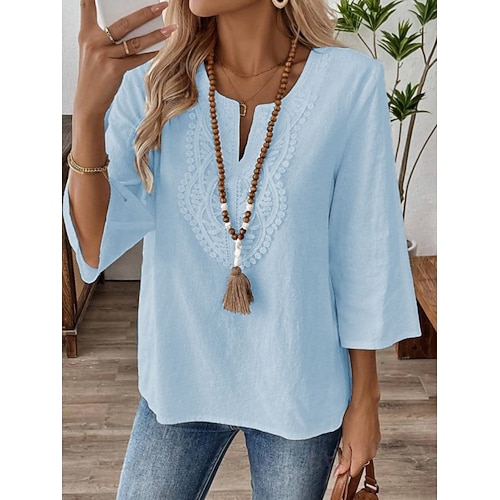 Per donna Camicia Camicie di cotone e lino Blusa Asimmetrico Semplice Attivo Elegante Manica Lunga Scollo a V Top Regolari Quotidiano Ferie Uscire Blu Oro rosa Bianco Rosa Rosso Estate Primavera