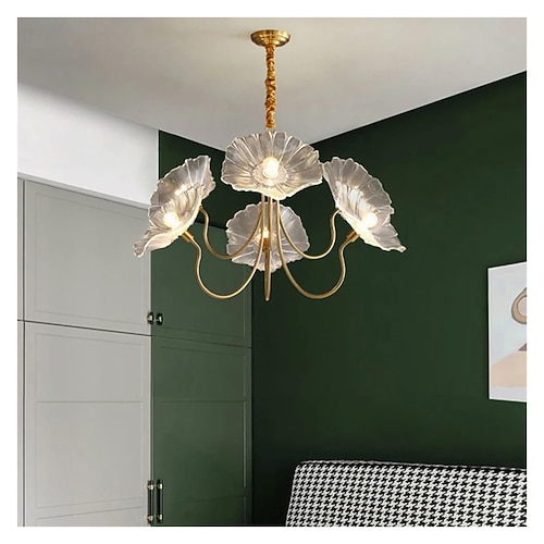 Lampadario a sospensione moderno di lusso con design floreale dorato a LED per soggiorno, camera da letto, sala da pranzo, cucina, lampada a sospensione E14, lampadario
