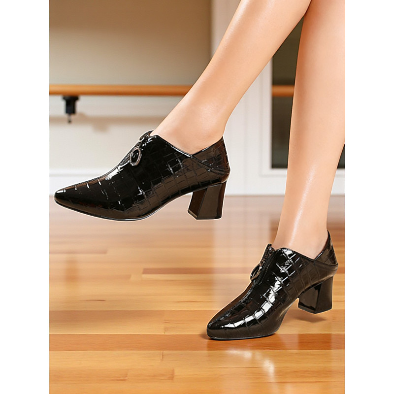 Women's Genuine Leather Latin Dance Shoes, Burgundy Croc-Embossed Block Heel Ballroom Footwear for Professional Salsa Party Performances