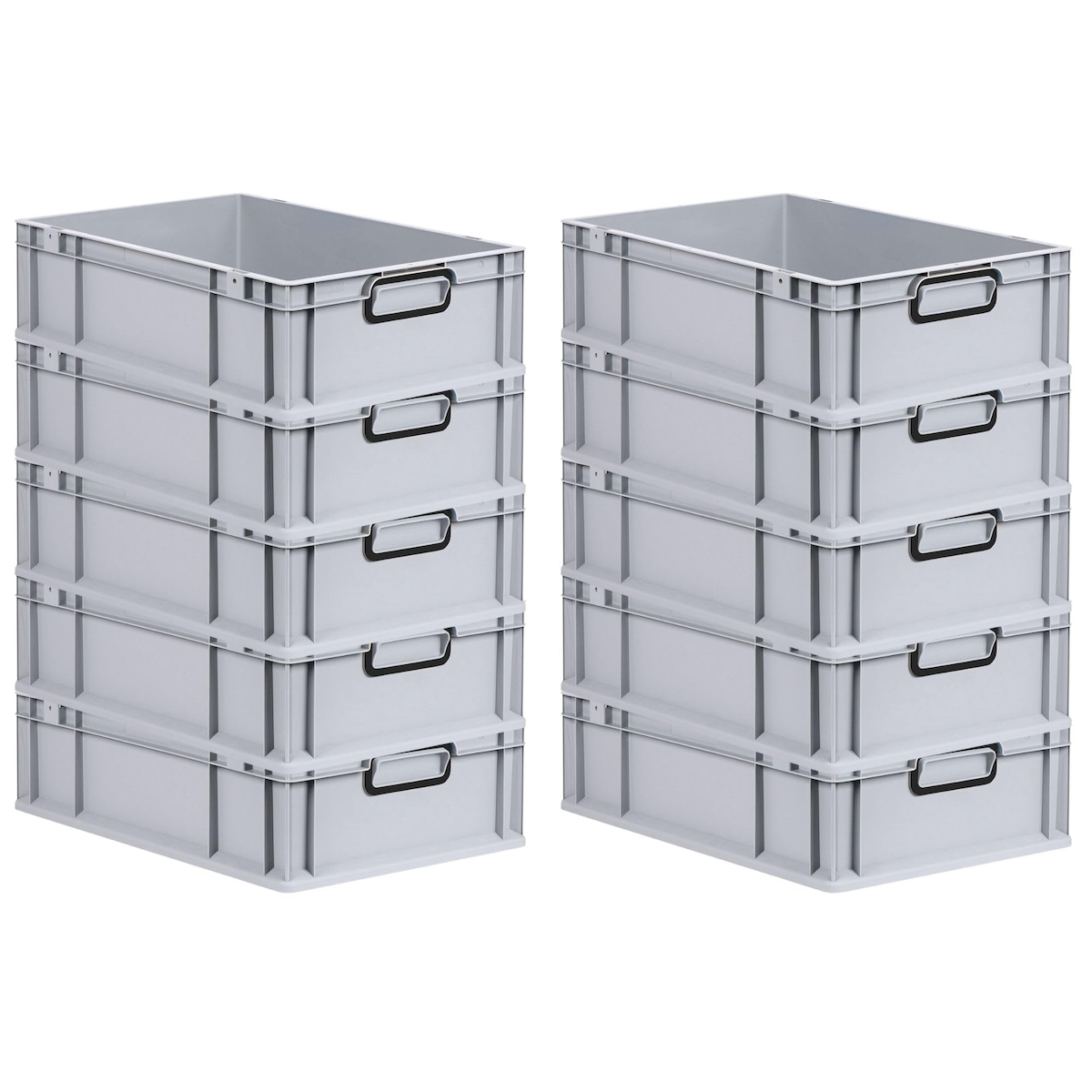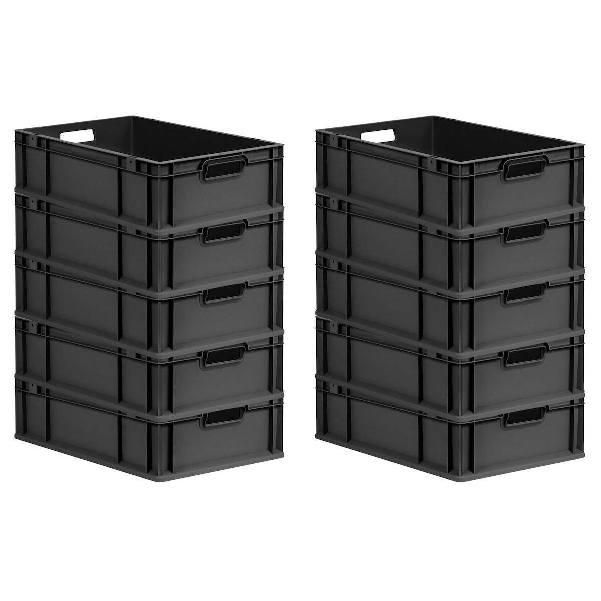 PROREGAL SparSet 10x Eurobox NextGen Grip, HxBxT 17x40x60cm, 34 Liter, Griffe offen, Schwarz, Eurobehälter, Transportbehälter