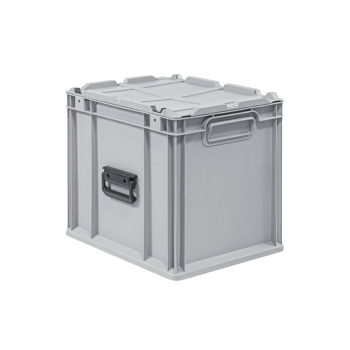 PROREGAL 4x Eurobehälter mit offenem Griff und Scharnierdeckel | HxBxT 40x30x40cm | 37 Liter | Grau | Eurobox