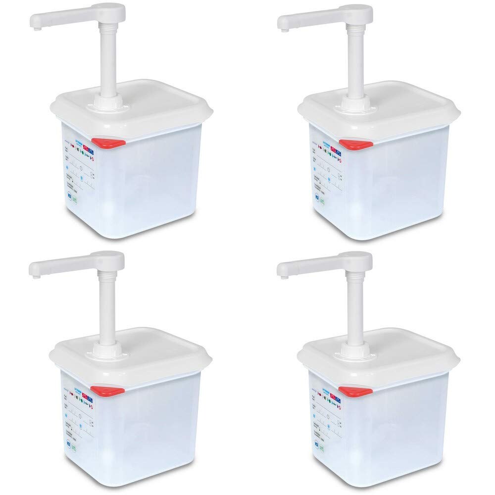 BRB 4x Pumpspender für Saucen, 2,6 Liter, pro Hub 30 ml, mit dichtschließendem Deckel, PP, LxBxH 176 x 162 x 190 mm
