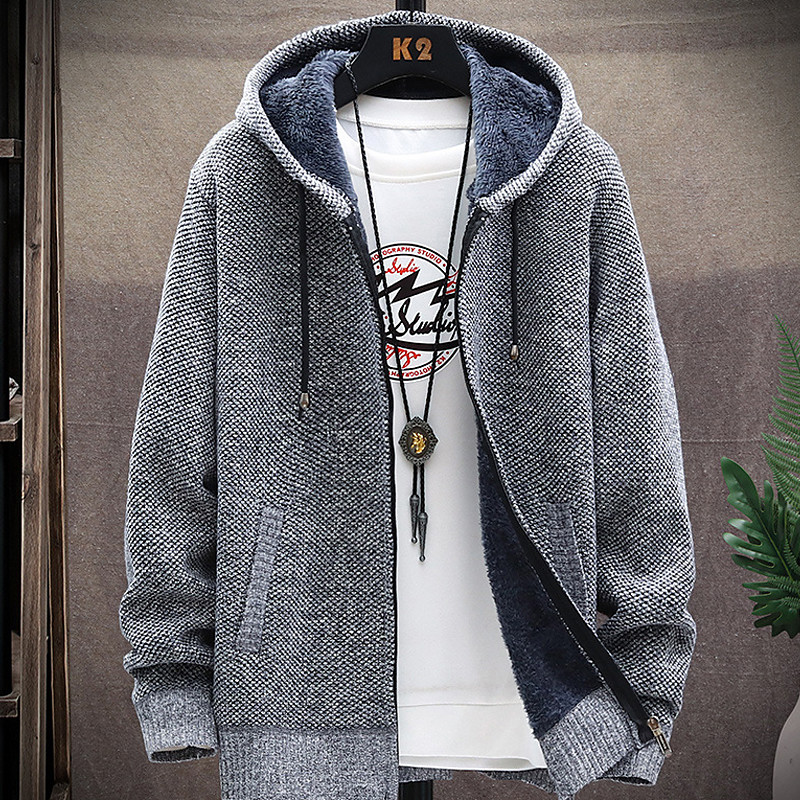 Men's Sweater Cardigan Sweater Hoodie Zip Sweater Sweater Jacket Knit Knitted Solid Color Hooded Stylish Outdoor Home Clothing Apparel Fall Winter Wine Blue S M L
