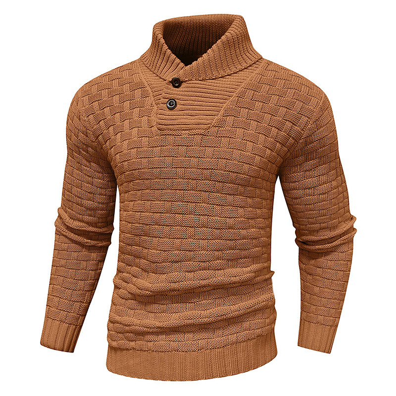 Men's Pullover Sweater Jumper Knit Regular Tops Color Block Buttons Solid Color Polo Collar Vintage Daily School Home Clothing Apparel Spring Fall Blue Brown S M L