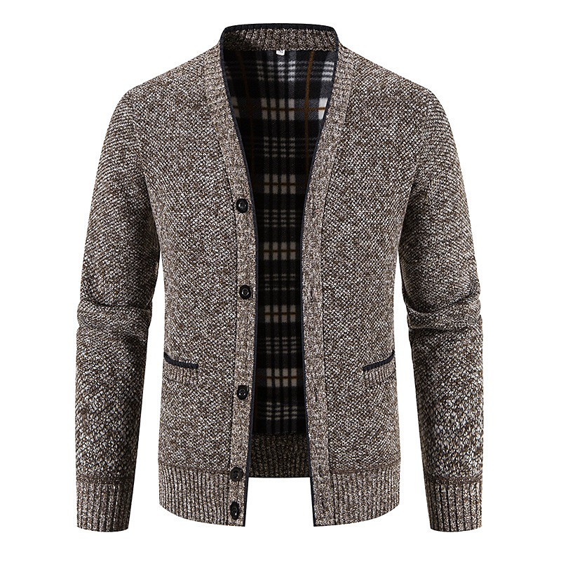 Men's Cardigan Ribbed Knit Regular Color Block Ribbed Solid Color V Neck Knitwear Elegant Home Work Clothing Apparel Bishop Sleeve Spring Fall Navy Blue khaki S M L