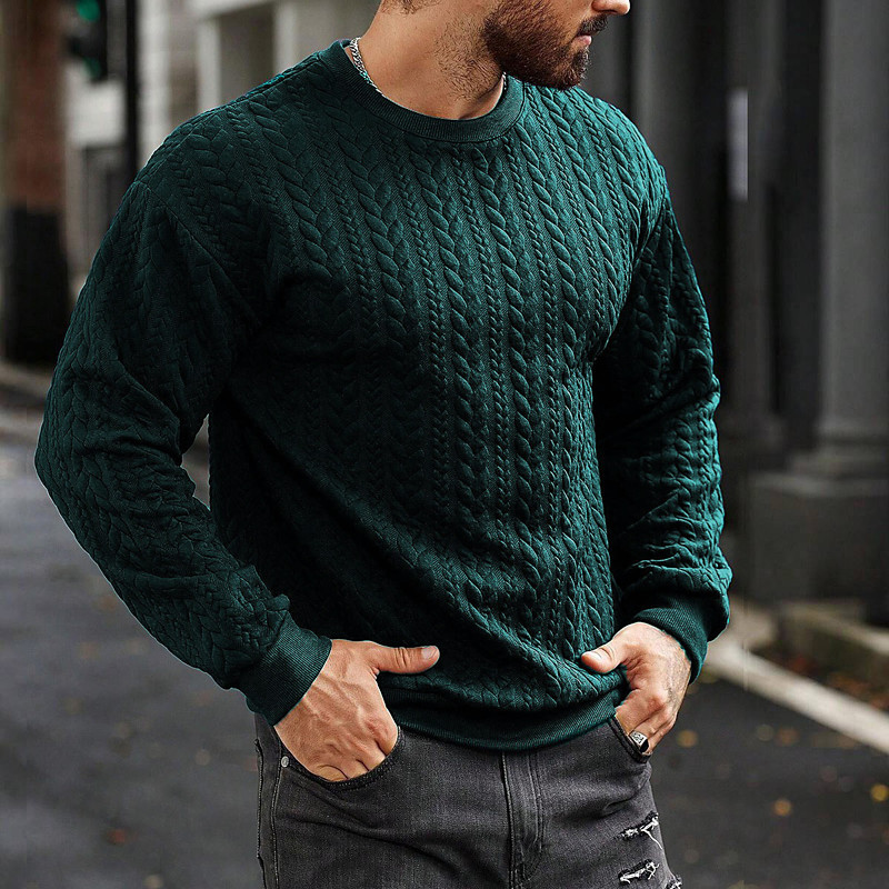 Men's Sweater Dress Sweater Pullover Sweater Jumper Knit Sweater Ribbed Cable Knit Cropped Knitted Crew Neck Modern Contemporary Daily Wear Going out Clothing Apparel Fall Winter Blue Black M L XL