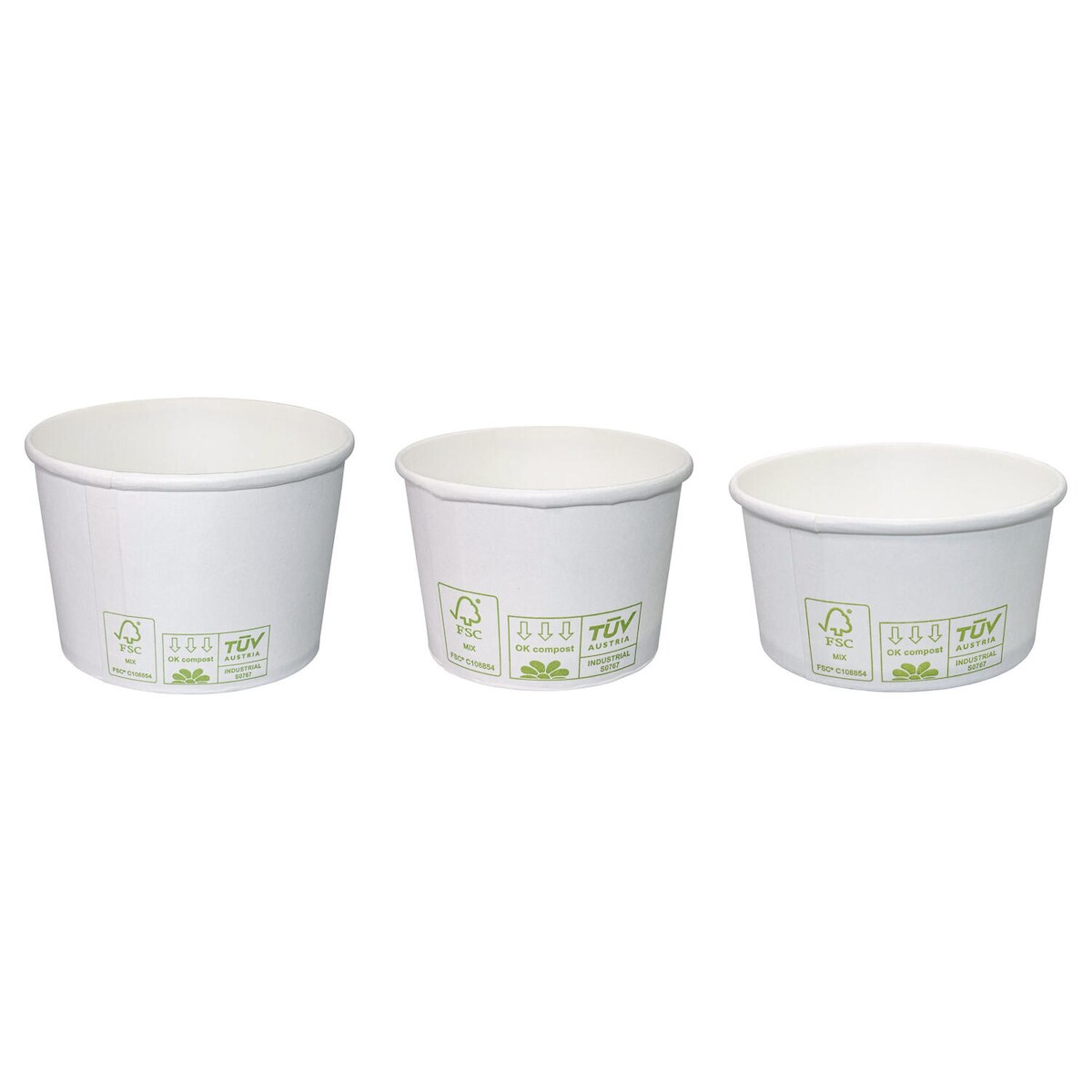 VEPATIM 50x Bio Eisbecher Pappbecher 100% ohne Kunststoff 160ml O85 Höhe 43mm weiß