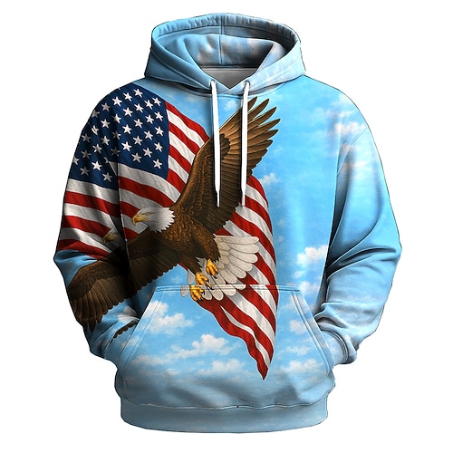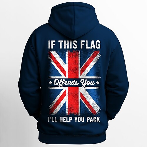 Herren Flagge UK Kapuzensweatshirt Pullover Sport Mode Rundhalsausschnitt Outdoor Büro Streetwear Blau Kordelzug 3D Herbst Winter Designer