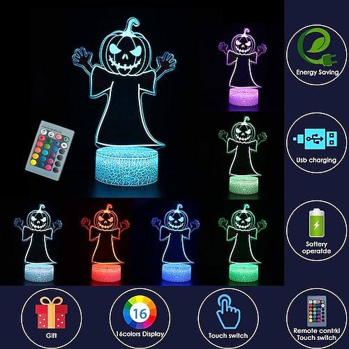 kürbis 3d nachtlichter halloween lichter geschenk nachttischlampe laterne spielzeug für kinder smart touch 3d illusion schreibtisch tischlampe 16 led farbwechsel lampe halloween kürbis kostüm zubehör