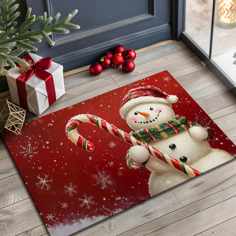 Christmas Decoration Doormat Xmas Snowman Couple Kitchen Mat Floor Mat Non-Slip Area Rug Oil Proof Rug Indoor Outdoor Mat Bedroom Decor Bathroom Mat Entrance Rug
