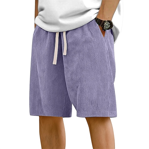 Per uomo Pantaloncini Estivi Shorts da Spiaggia Pantaloncini casual Pantaloncini di velluto a coste Coulisse Elastico in vita Tinta unica Comodità Lunghezza al ginocchio Quotidiano All'aperto