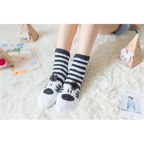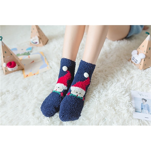 calzini da donna a pantofola natalizi, calzini da donna in pile corallo con motivo cartoon, calzini da pavimento soffici a metà polpaccio, edizione transfrontaliera per le festività natalizie