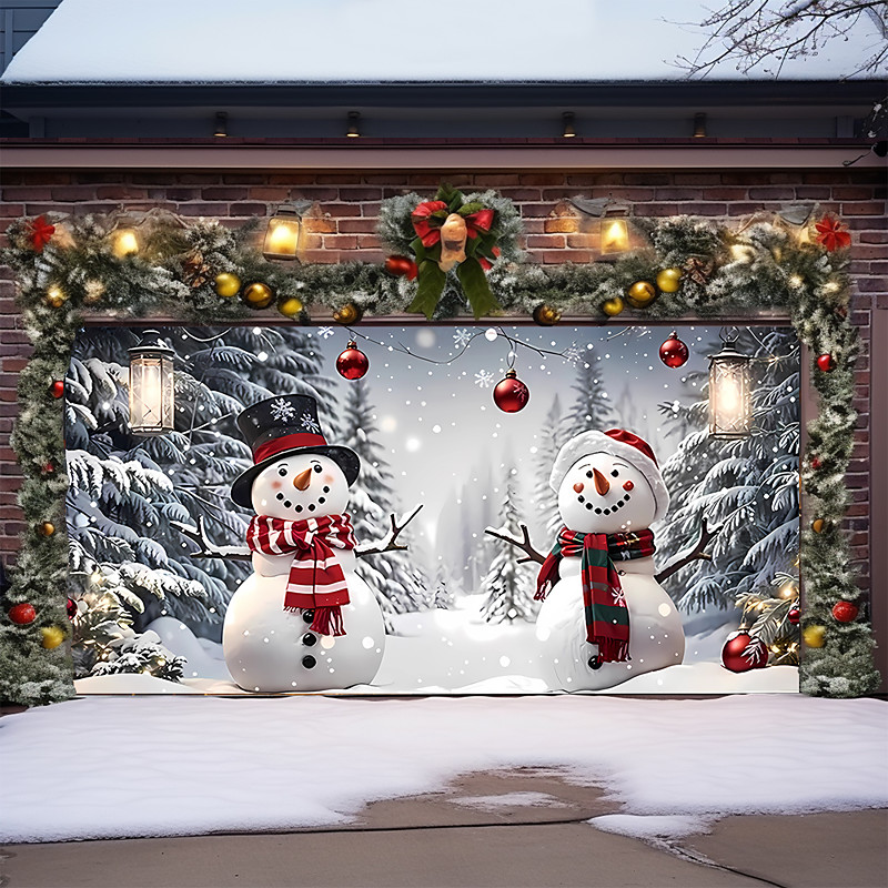 Christmas Tapestry Garage Door Cover Large Hanging Backdrop Snowman Cute 3D Party Outdoor Holiday Shooting Backgrounds Yard Home Decor