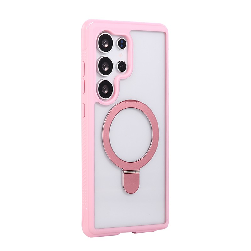 Phone Case For Samsung Galaxy S25 Ultra Plus S24 S23 S22 Magnetic Adsorption With Magsafe with Stand Holder Transparent Magnetic Acrylic Metal
