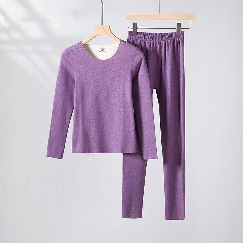 Women's Cold Weather Top Bottom Base Layer Top Bottom Thermal Underwear Set Thick Solid Color Clothing Suit Winter rice white Black Gym Pilates Yoga Warm Long Sleeve Sport Activewear Tight Fit