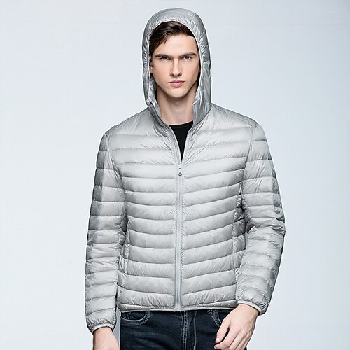Per uomo Giacca Invernale Giacca Piumino Giacca imbottita Giacca Imbottita Tasca Piumino in piuma d'oca grigia Vacanza Abbigliamento quotidiano Data Regolare Moda Casual Confortevole Calore Termico