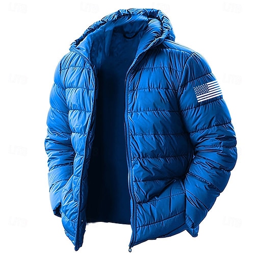 Per uomo Bandiera Americana Cappotto Invernale Giacca Piumino Giacca imbottita Calore Termico Impermeabile alla pioggia Leggero Casual All'aperto Quotidiano Giacca imbottita trapuntata con cappuccio