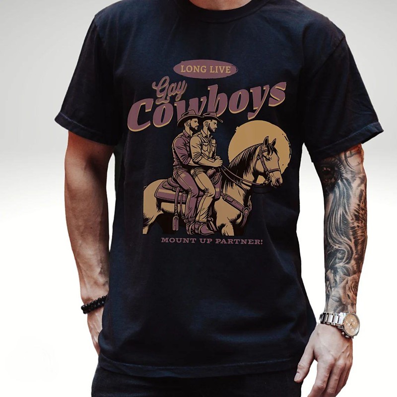 Rainbow Brokeback Mountain Cowboy LGBTQ T-shirt Pride Shirts Pride Graphic For Couple's Men's Women's Adults' Masquerade Hot Stamping Pride Parade Pride Month
