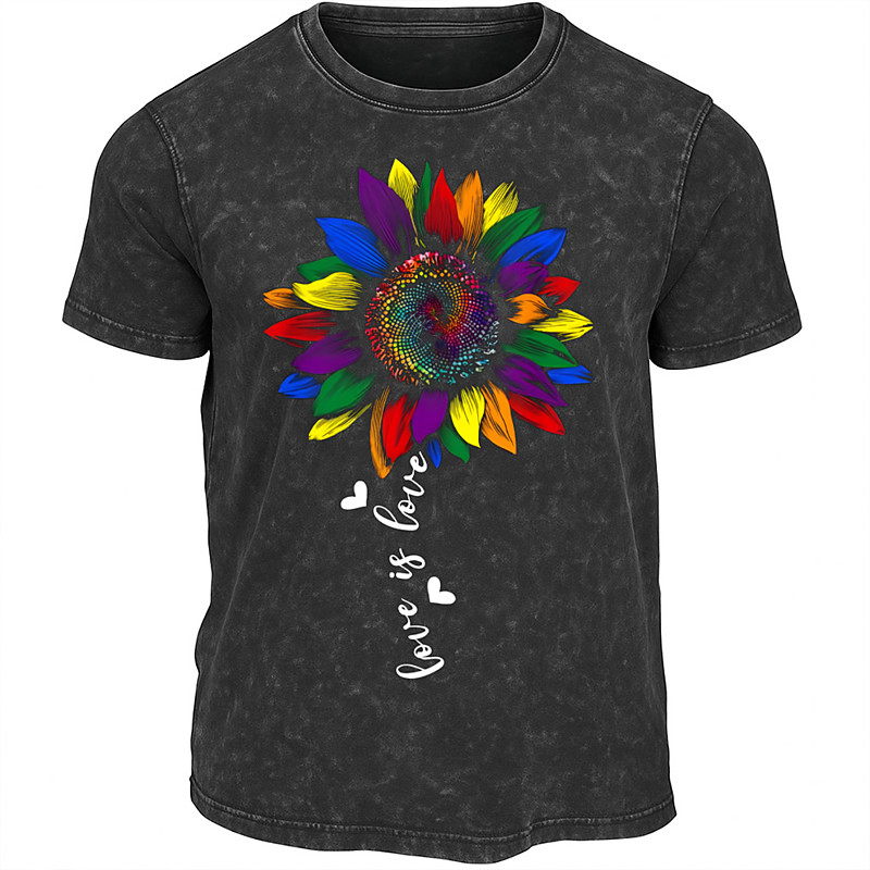 Men's Pride T-Shirt Love Is Love Rainbow Sunflower Graphic Short Sleeve Tee