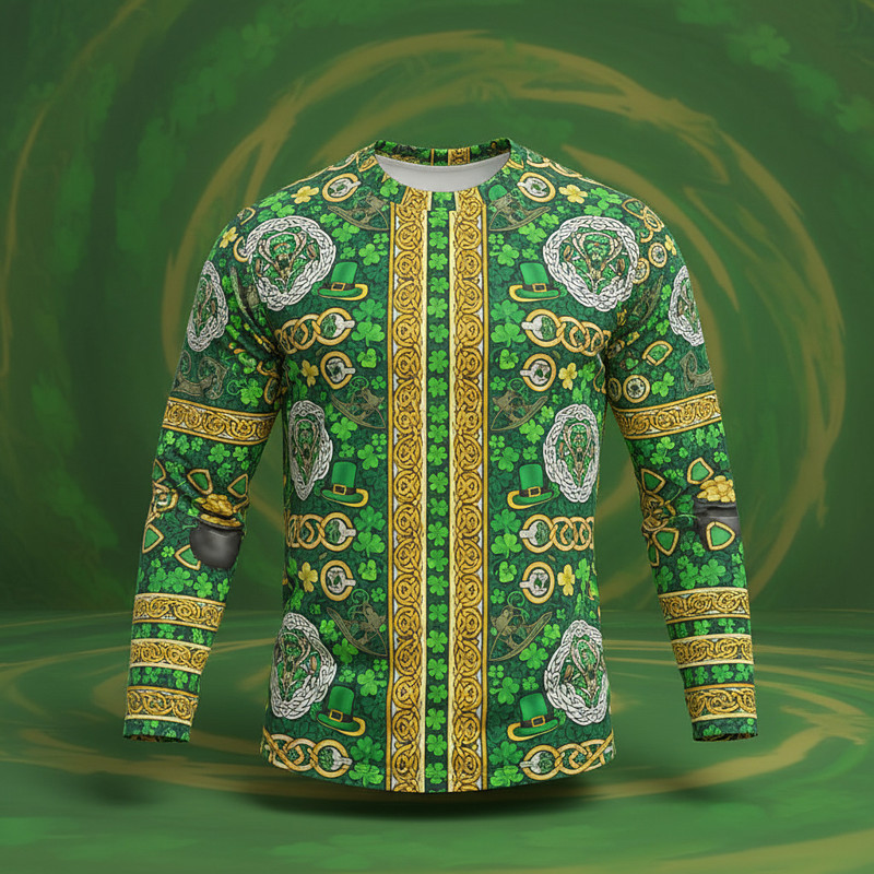 St. Patrick's Day Long Sleeve T-Shirt for Men Lucky Irish Clover Shamrock Graphic Tee 3D Print Crew Neck St. Paddy's Day Top