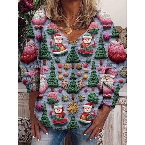 Per donna Felpa Casual Morbido Pupazzo di neve Fiocchi di neve A Coste Scollo a V Lavorato a maglia Manica Lunga Top Regolari Maglia Natale All'aperto Quotidiano Nero Blu Reale Autunno Inverno