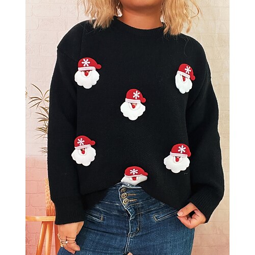 Per donna Felpa Maglione Pom Pom regalo di Natale Streetwear Pupazzo di neve A Coste Girocollo Lavorato a maglia Manica Lunga Top Regolari Maglia Natale All'aperto Ferie Nero Rosa Autunno Inverno