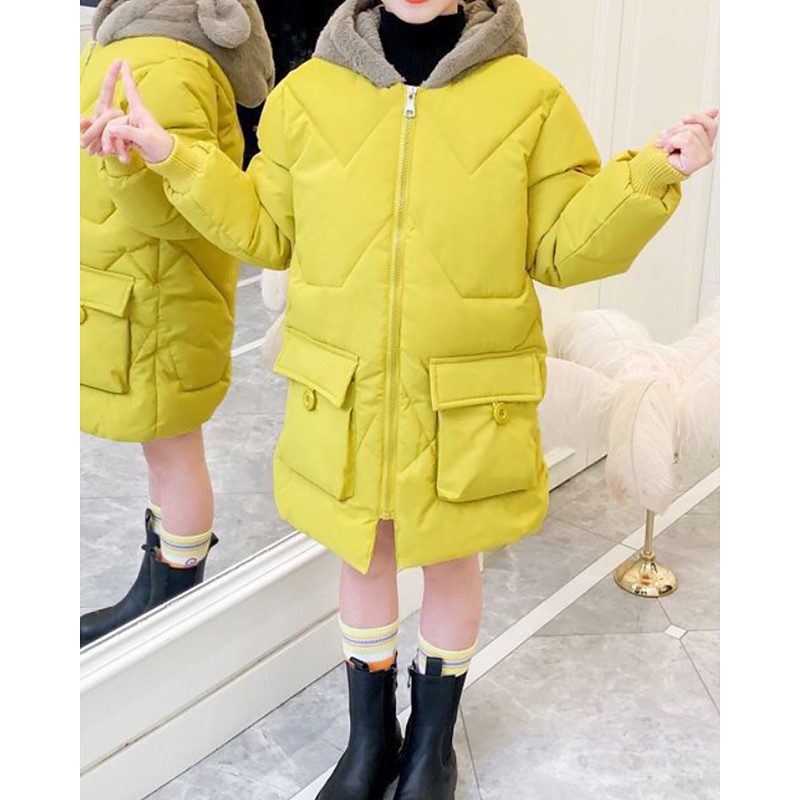 Kids Girls' Down Coat Solid Color Fashion Zipper Pocket School Coat Outerwear 4-12 Years Winter Yellow Pink Red