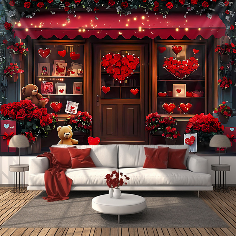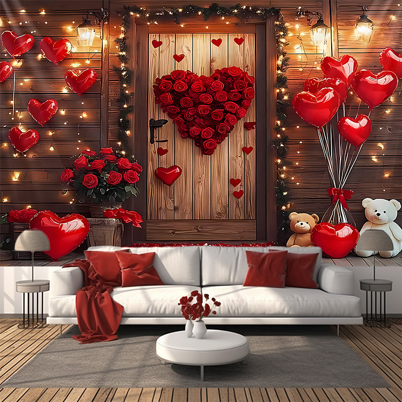 Valentine's Day Tapestry Banners Blanket Rose Love Heart Cute Romantic 3D Party Living Room Shooting Backgrounds Marriage Proposal Decoration Home Decor